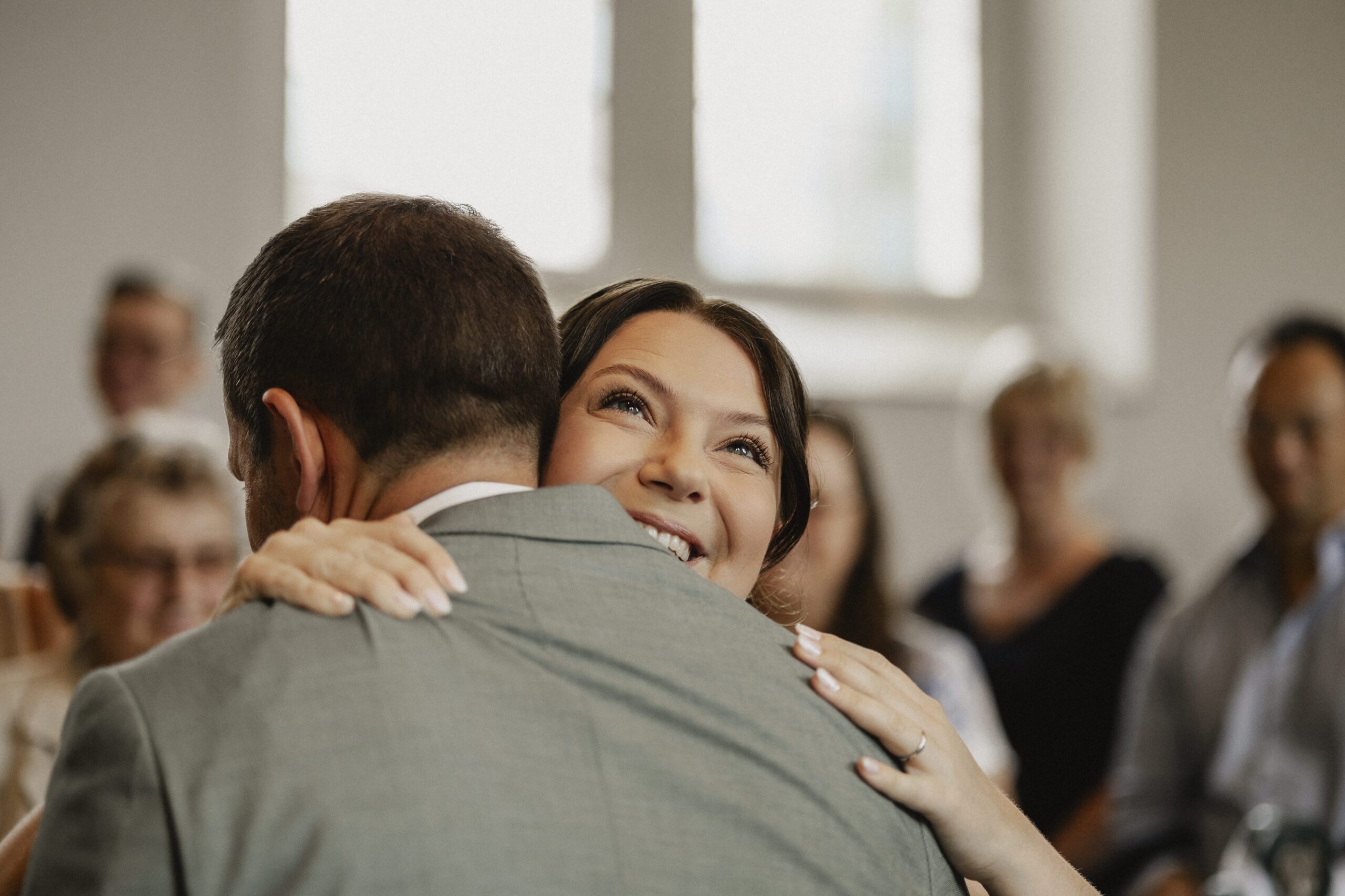 Nach der Trauung folgten herzliche Umarmungen und Glückwünsche von Familie und Freunden. Diese Augenblicke gehören für mich zu den schönsten einer Hochzeit, weil sie so ehrlich und voller Liebe sind.