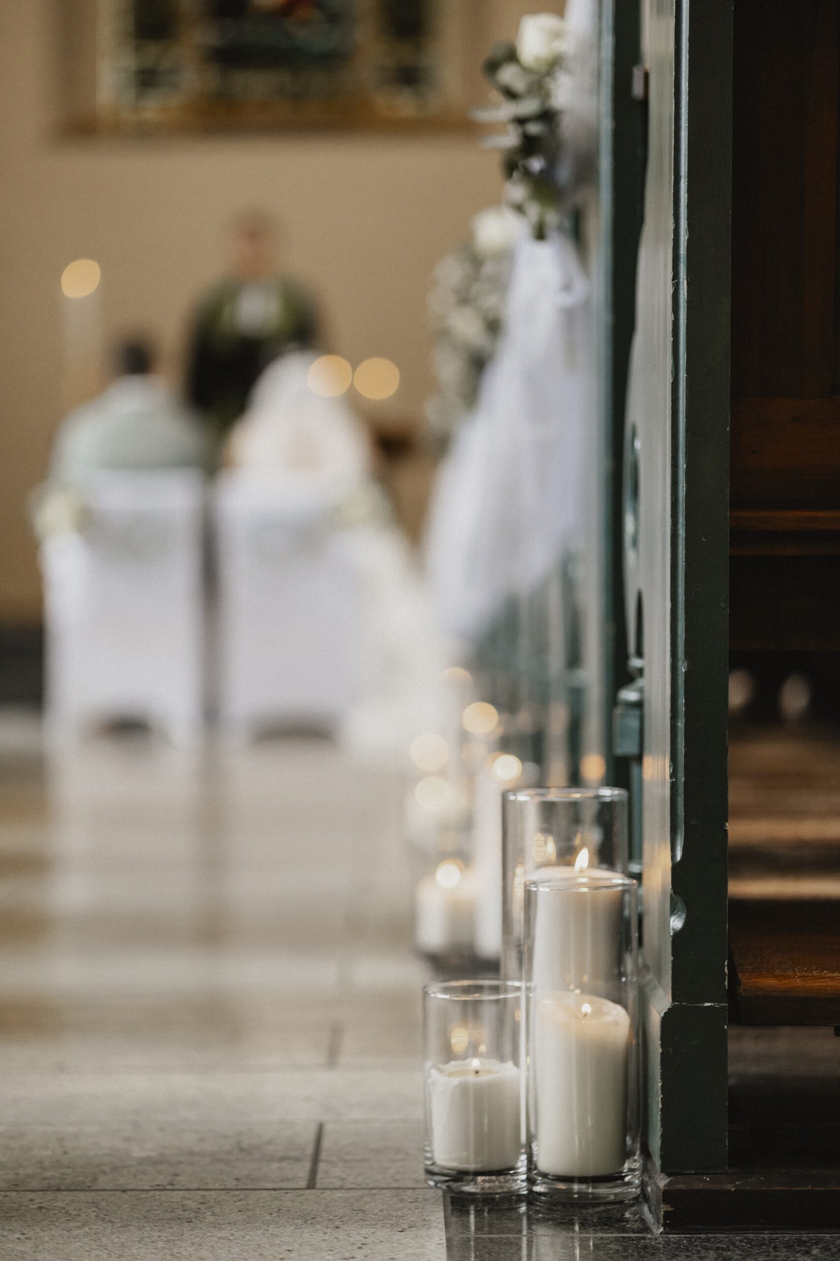 Mara wurde von ihrem Papa zum Altar geführt und an Daniel übergeben. Als die beiden gemeinsam den von Kerzen beleuchteten Weg zum Altar entlanggingen, war die Stimmung in der Kirche unglaublich emotional. Schon hier flossen die ersten Tränen – auch bei mir hinter der Kamera.